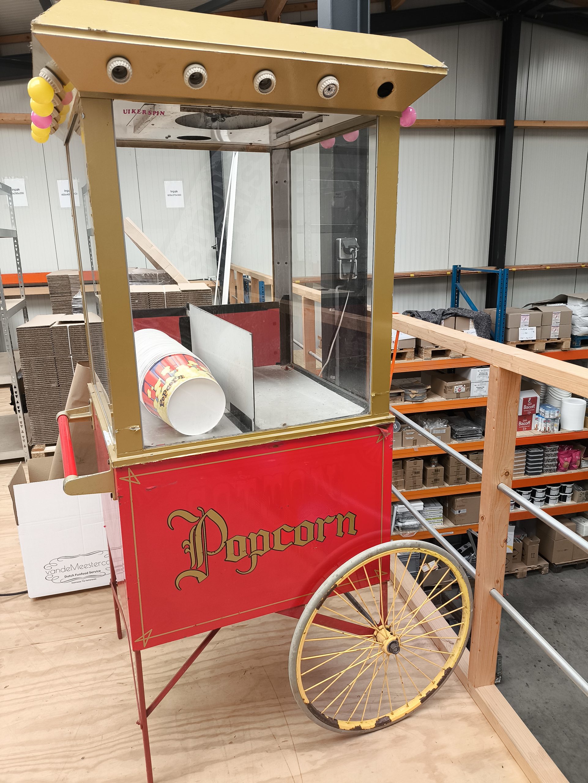 Popcornmachine groot + uitgiftekar Gold Medal € 220,- (werking onbekend)
