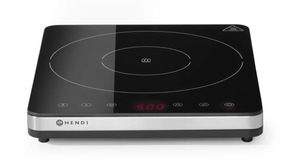 Zeer strakke vormgeving die niet misstaat tijdens live cooking. Zeer platte behuizing met roestvaststalen frame. Oppervlak van keramisch glas met digitaal display erin verwerkt.