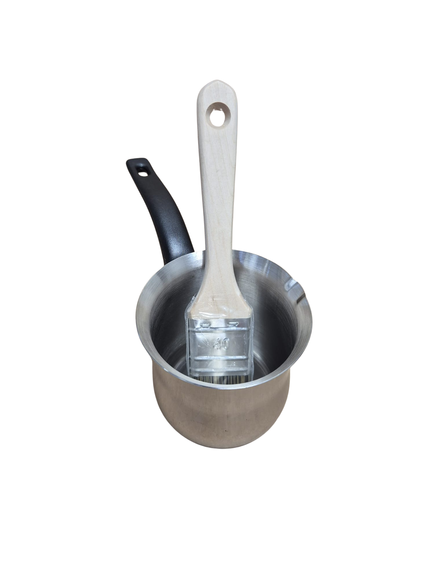 Handige invetpan combinatie om b.v. uw poffertjesplaat mee in te vetten.