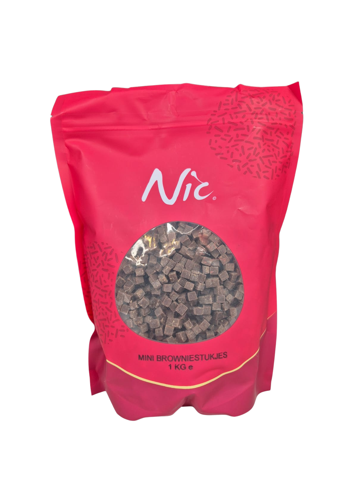 Zachte smeuïge mini brownie stukjes met volle chocoladesmaak.